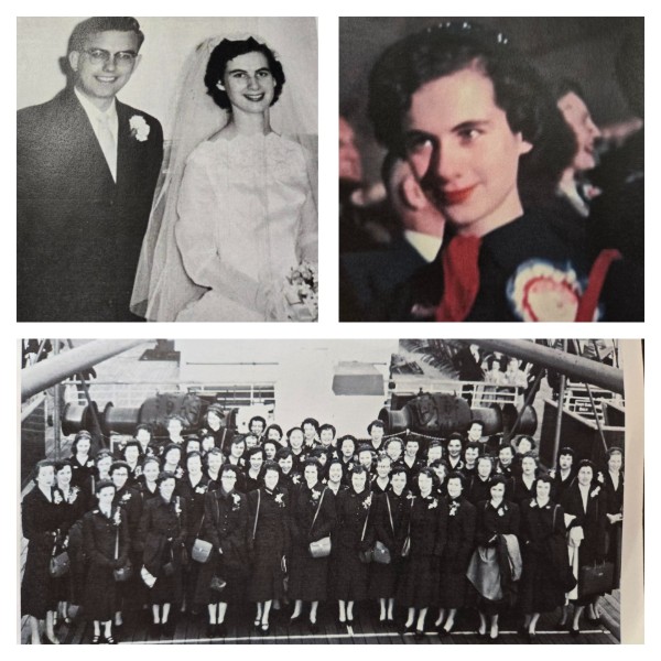 Pictured above, clockwise from top left, Art and Marjorie Woitte on their wedding day in 1957, Marjorie in 1953 and the Weston Girls in 1953.
