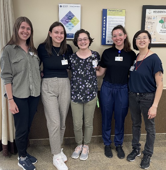 Five members of the life enrichment team at Westmount Gardens pose for a group photo.